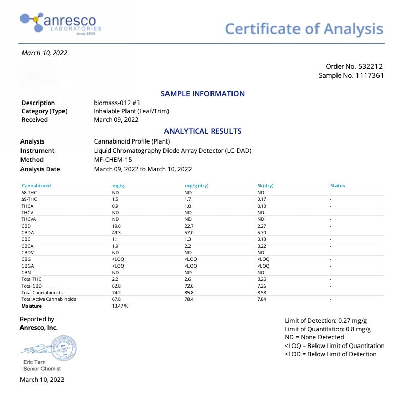 Bulk wholesale CBD Biomass 7.26% CBD
